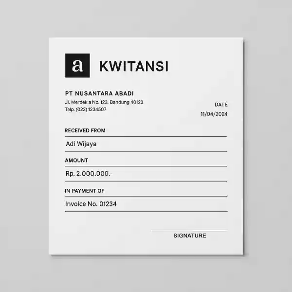 Jika Anda memiliki logo di media sosial, spanduk, kartu nama, atau kemasan produk, semua itu sebaiknya di padukan dengan desain nota. Konsistensi visual membuat citra brand lebih kuat dan mudah di ingat.